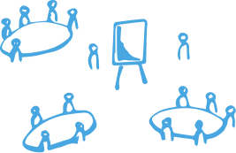Nous utilisons la dynamique de groupe (20 à 60 personnes) pour favoriser l’apprentissage entre pairs. Le fil conducteur du Bootcamp est la simulation de la transformation d’une entreprise virtuelle. Les participants doivent relever en équipes différents challenges qui favorisent la compréhension des concepts, les échanges, et l’ancrage des nouvelles acquisitions par l’expérimentation.